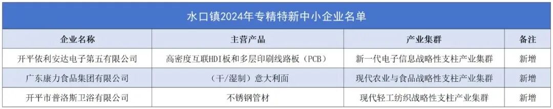 《广东省工业和信息化厅关于公布2024年专精特新中小企业和2021年到期复核通过企业名单的通告》发布,其中,水口镇有3家企业新上榜,增量并列全市第一。目前,水口镇累计培育省级专精特新中小企业达28家,存量开平市第一,其中,国家级专精特新“小巨人”企业1家,为全市制造业高质量发展注入强劲动能。