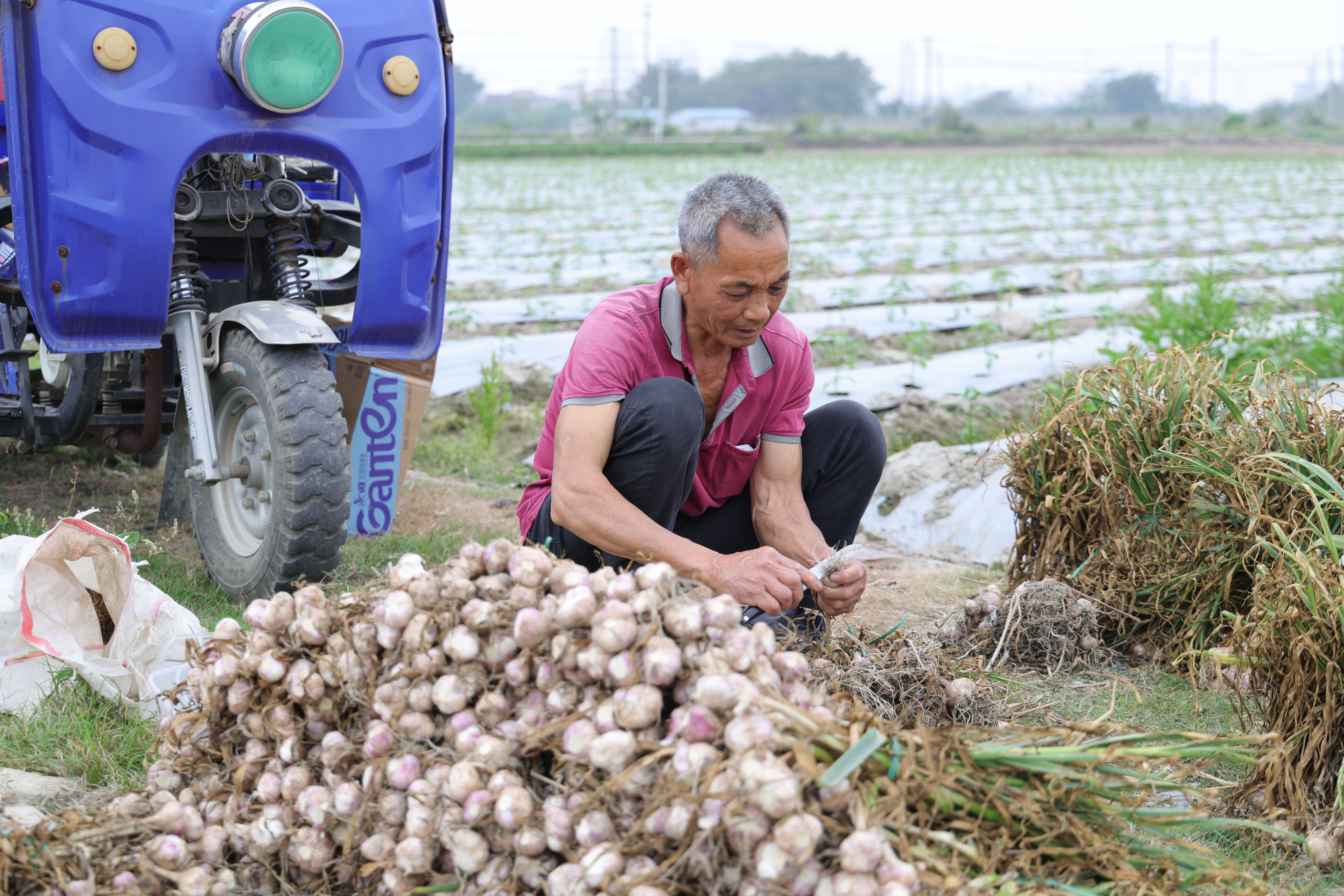 春回大地,万物生长。近日,水口镇金山村的田间地头,蒜香四溢,该村种植的金山火蒜喜获丰收,种植户纷纷开启收割工作。2026年,金山火蒜不仅迎来了硕果累累的丰收季,金山火蒜种植和熏烤技艺更被正式列入开平市第八批县级非物质文化遗产代表性项目名录,标志着这一承载着百年历史与侨乡情怀的传统技艺,焕发出新的生机与活力。