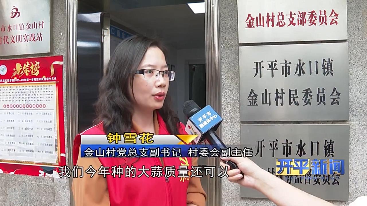 金山村党总支副书记、村委会副主任 钟雪花:我们今年种的大蒜质量还可以,个头比较大,口感比较结实。产量也算不错,蒜肉瓷白厚实,味道辛辣香浓,炒菜时添加我们的金山火蒜,味道更是锦上添花。