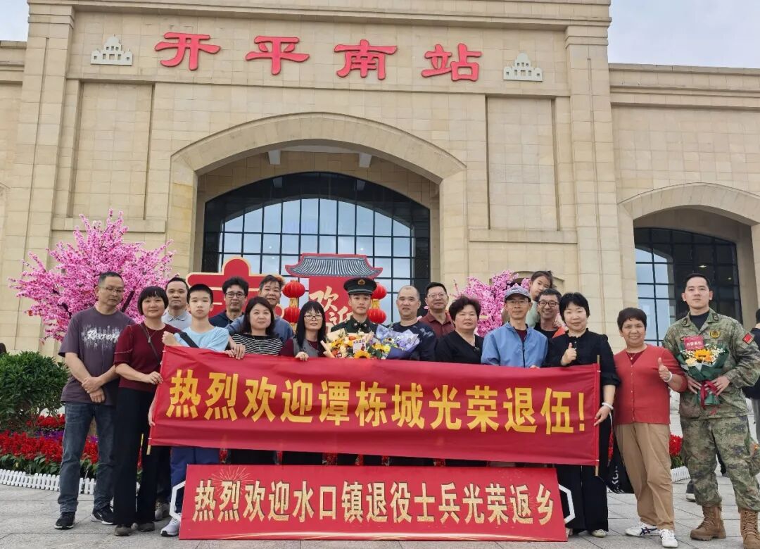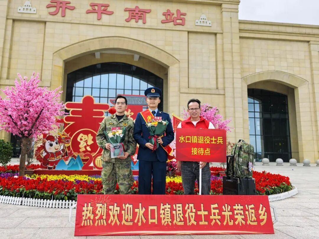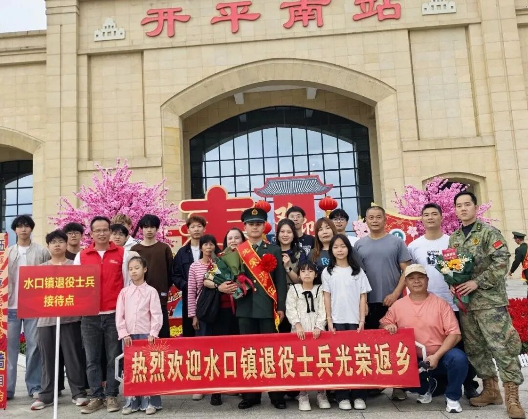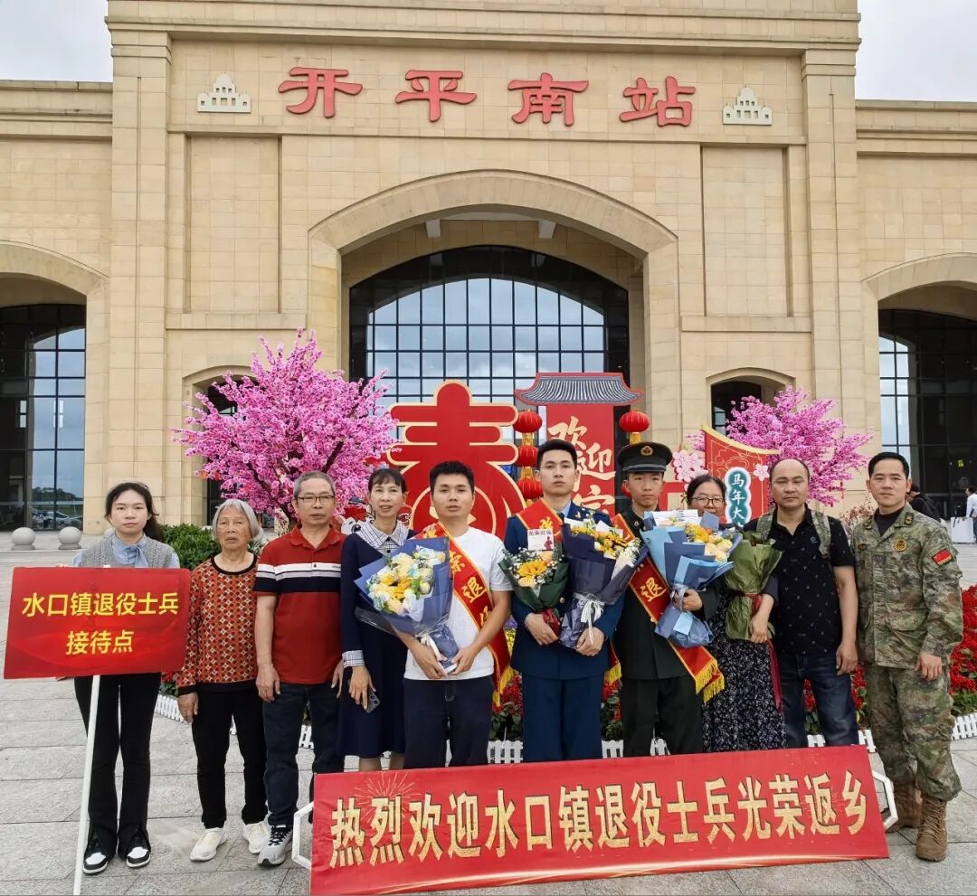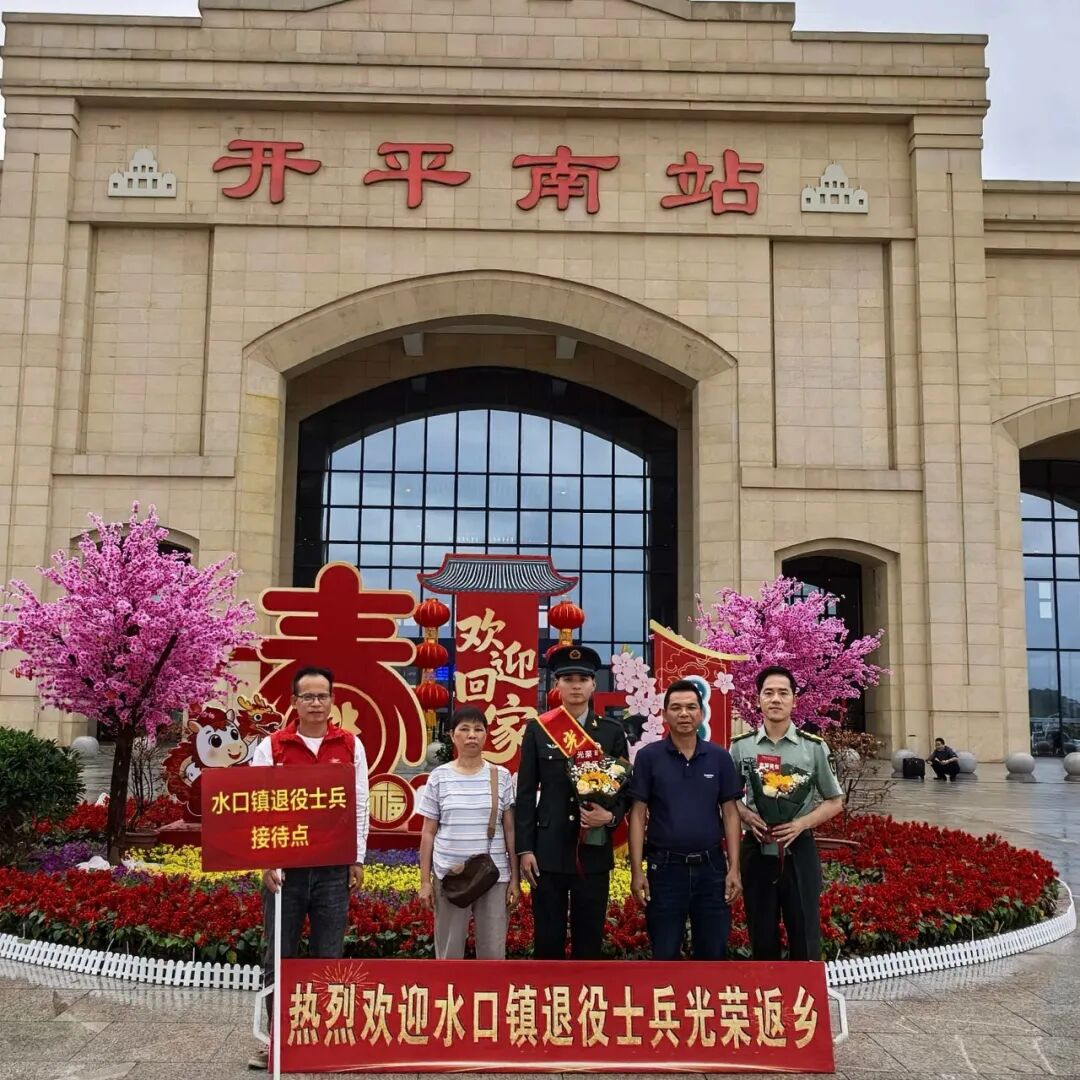 春风送暖,万物向阳,又到一年退伍季。近日,开平南站出站口洋溢着喜庆与温情的气氛,水口镇退役军人服务站联合退役军人家属朋友组成“亲友团”,用满满的仪式感温情迎接2026年春季退役士兵光荣返乡。