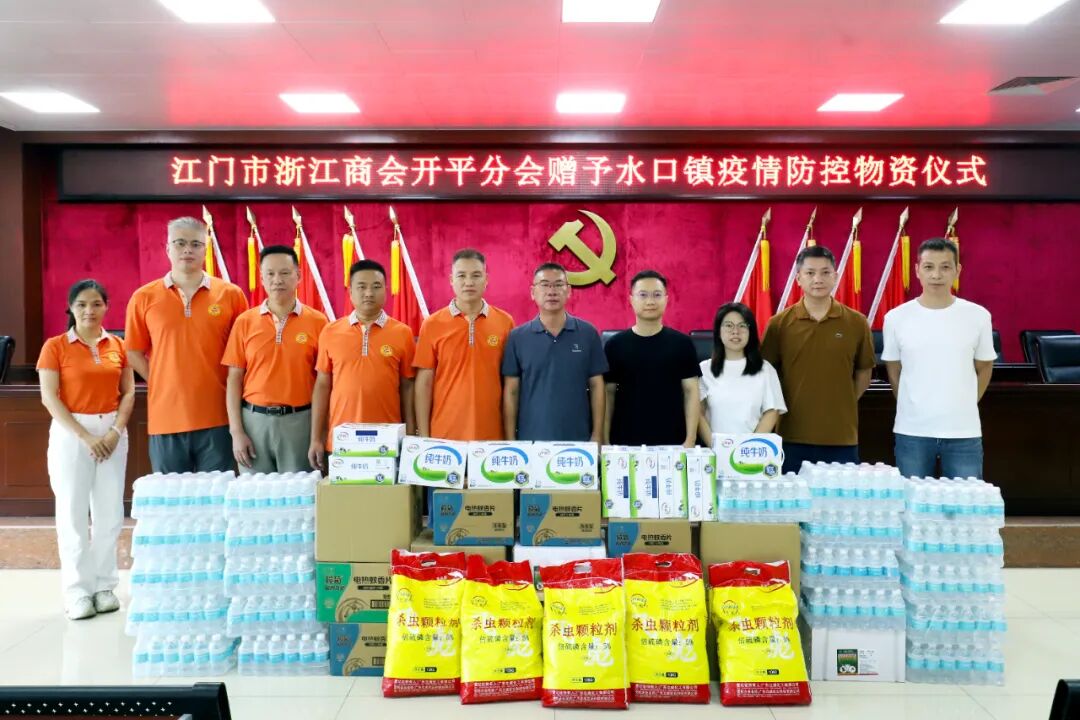 江门市浙江商会开平分会捐赠一批矿泉水、牛奶、电热蚊片、杀虫颗粒和热烟雾剂,为奋战一线的防控人员送来“及时雨”的同时,对持续开展蚊媒密度控制、阻断疾病传播途径具有重要作用。