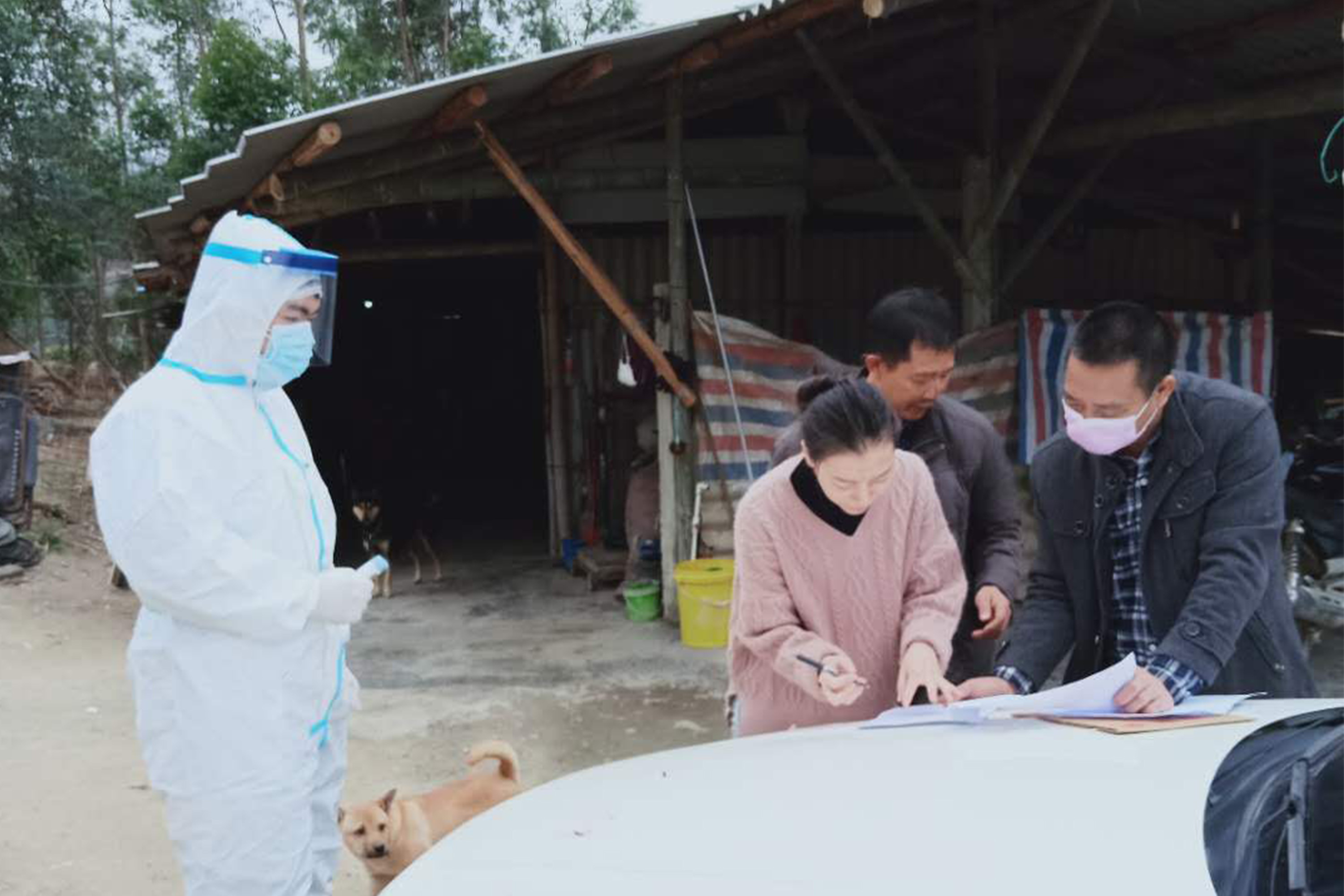 胡伏龙同志作为分管农业的副镇长,在抓好自己所驻村委直联服务工作同时带头做好养殖户信息摸排登记,重点做好湖北籍外来务工禽类养殖的信息登记工作。沙塘镇有30多户养殖户,其中大多数在丽新村。连日来,他亲自带队,组织本部门同事对辖区内养殖户开展地毯式排查,排查是否有湖北籍人员,并且对于每个湖北籍人员联系到人,确保掌握每个湖北籍人员的活动情况和身体状况,动态监测、精准掌握人员数量,确保不漏一户、不漏一人,做好登记。当遭到部分不理解防疫工作的养殖户刁难时,胡伏龙同志并没有退缩和放弃,依然坚持不懈向他们解释防控工作对人民群众生命健康安全的重要性,最后得到大家的支持与配合。在排查过程中,发现有3户从疫区回来的养殖户,他亲自带队上门为监测对象落实体温检查。为了缓解被监测群众的情绪,他总是关心地问道:“今天身体怎么样啦?有没有不舒服?” “如果在居家隔离期间有什么需要,可以向我们反映。”同时反复叮嘱监测对象要做好14天的居家隔离,没事少出门、出门戴口罩、要勤洗手等等,并落实村委会做好隔离其间生活用品的供给。