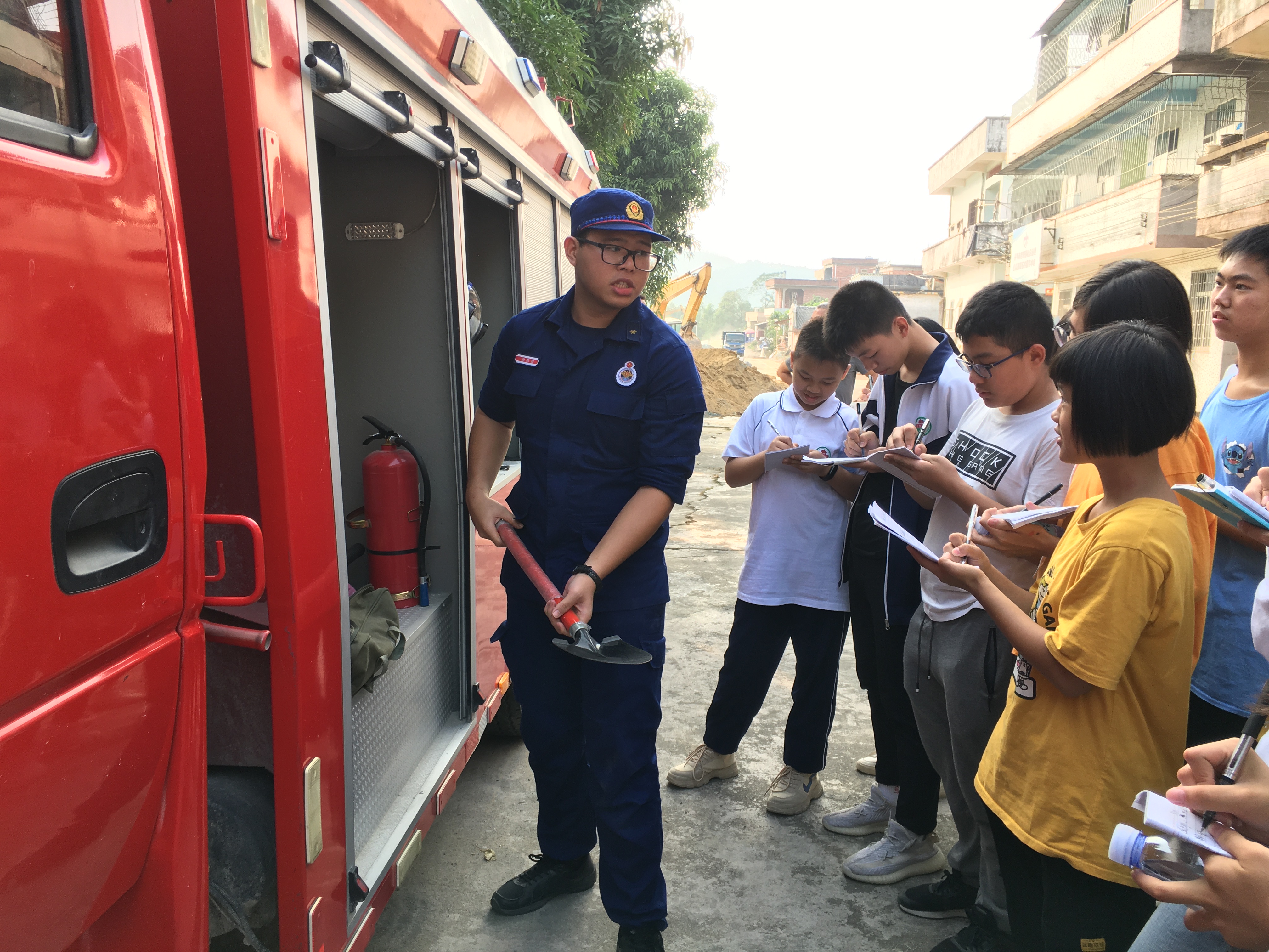 活动现场紧紧围绕“防范火灾风险、建设美好家园”的主题,镇专职消防队员用通俗易懂、生动有趣的语言向参观人员介绍了镇专职队现有的车辆装备、防护服装、特勤器材等设备,结合基层农村家庭生活中的实际案例,讲解了消防法规、模拟逃生和灭火等基本原理。