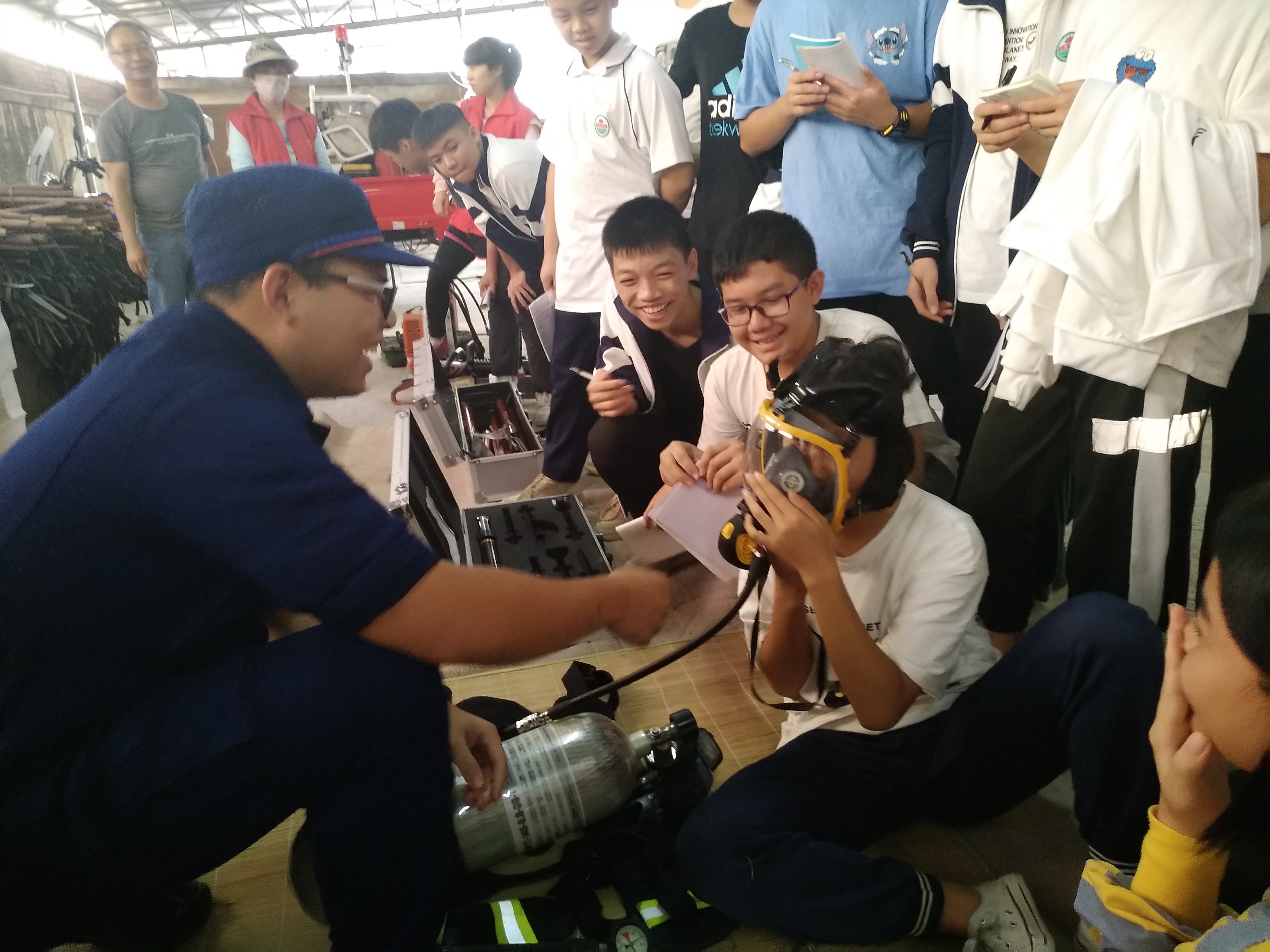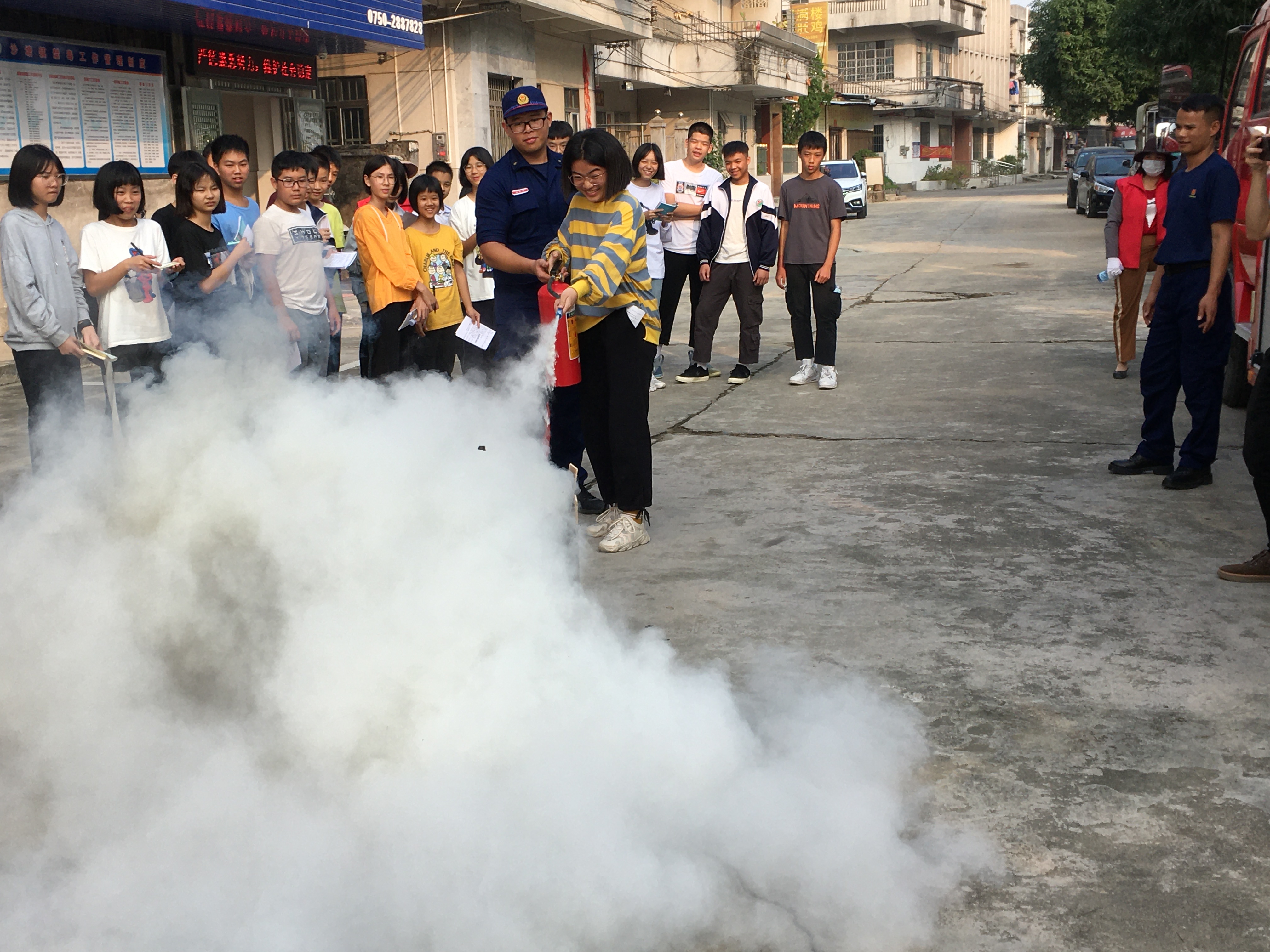 为深化宣传教育效果,参观人员还学习了解空气呼吸器的佩戴和灭火器的使用方法,消防战士们现场表演灭火操及浇灭油盆火项目,大家能更近距离地了解消防知识,掌握逃生技能,提高了应急处理能力。