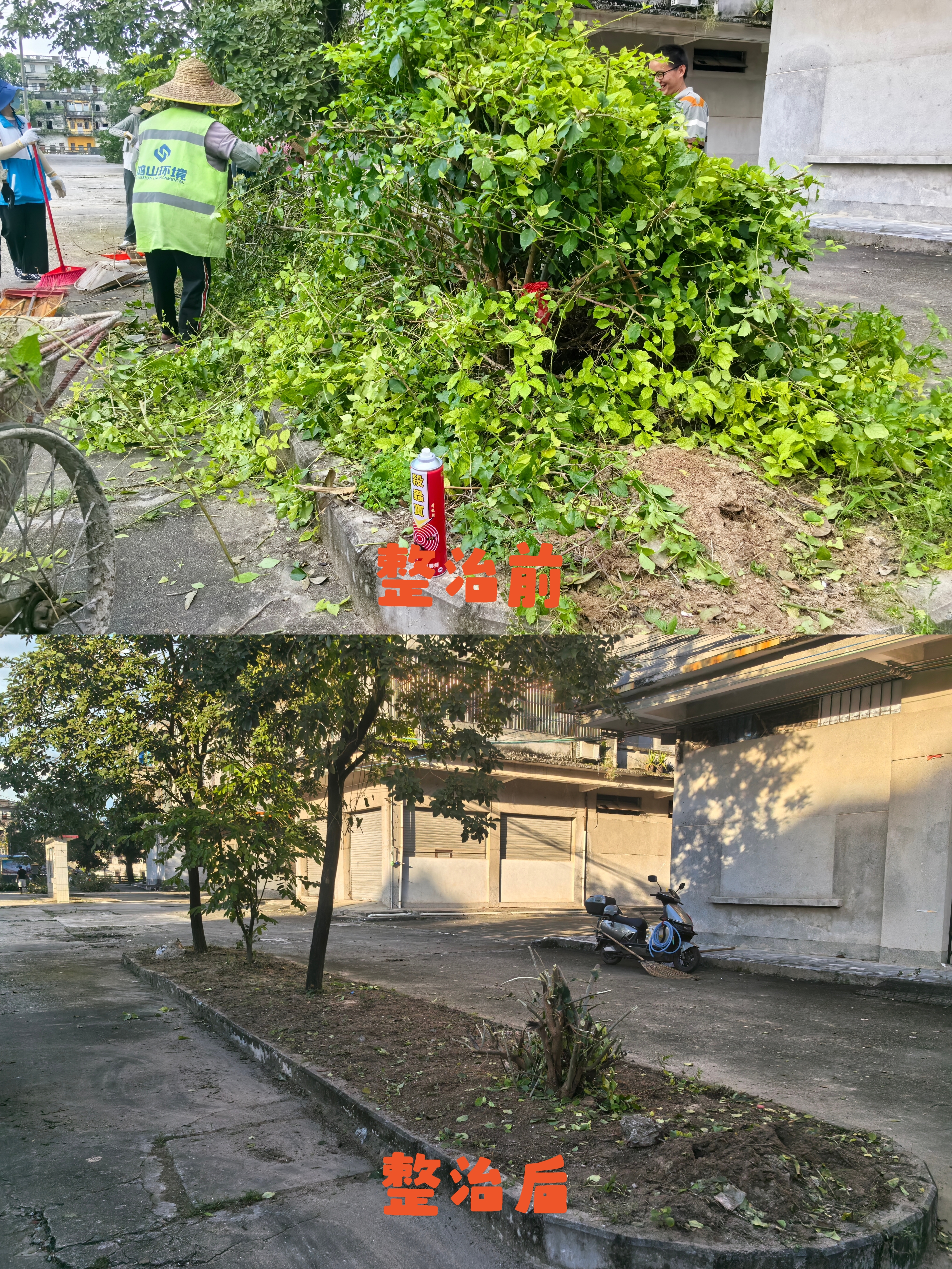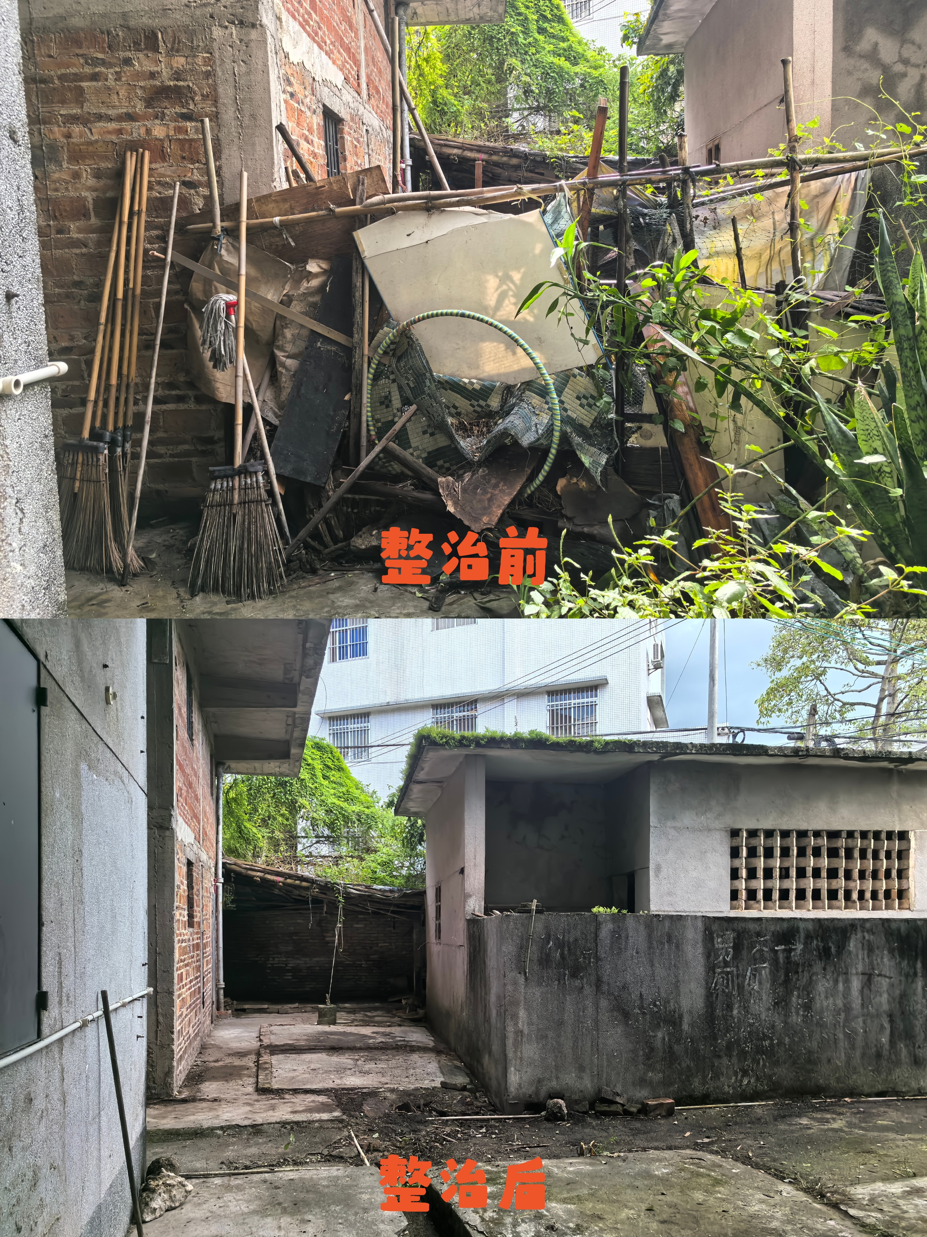 行动中,镇、社区工作人员组成环境整治攻坚专项小组,聚焦蚬冈墟社区内的背街小巷、闲置地块等重点部位,实施“靶向清理”。针对蚊虫孳生的关键源头,攻坚小组排查积水点、生活垃圾、杂物堆放点,对废弃容器、闲置杂草等进行彻底清除与疏通,从根源上切断蚊虫繁殖路径。同时,集中清理堆放的废旧家具、枯枝落叶、建筑废料等各类杂物,累计清运垃圾杂物超6吨,有效消除卫生死角与消防安全隐患。