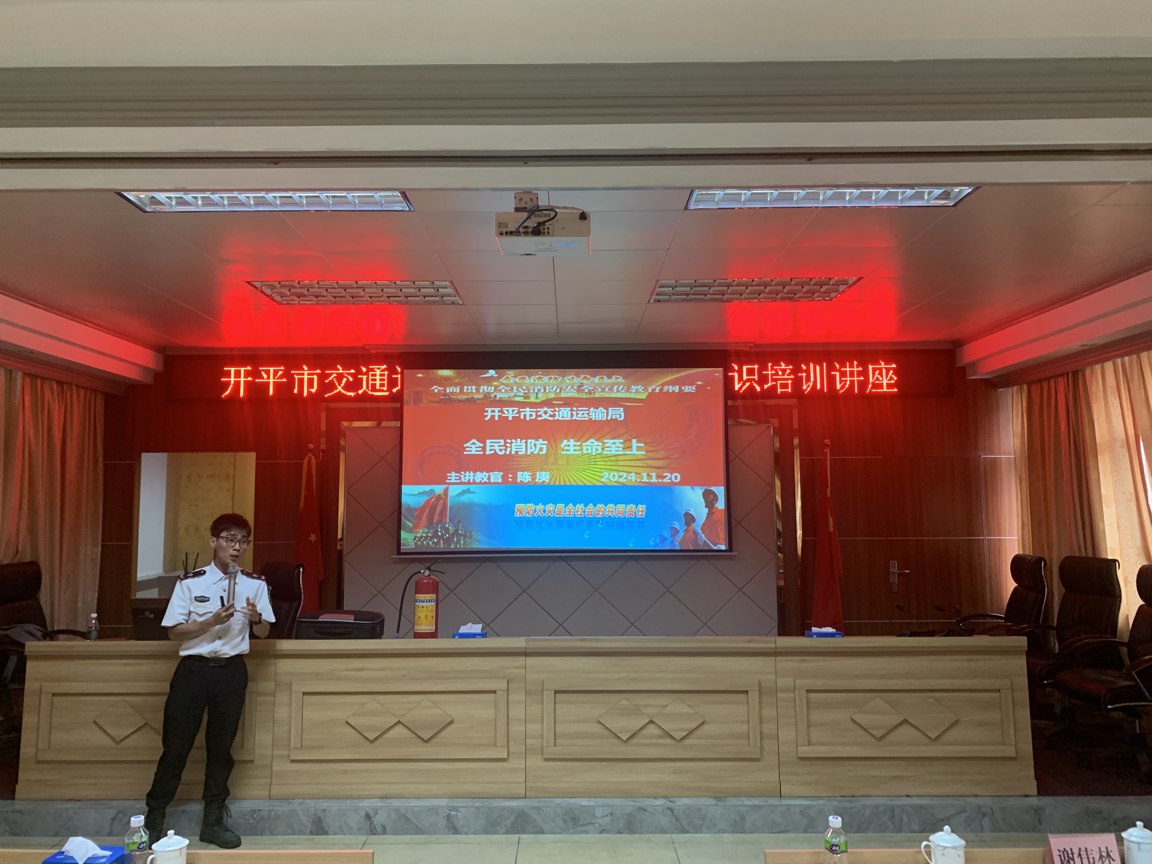 今年11月9日是第33个全国消防日,为进一步提升交通运输行业消防安全意识和自防自救能力,推动落实消防安全责任,结合消防宣传月活动的主题“全民消防、生命至上”,市交通运输局于11月20日开展2024年消防安全培训讲座。