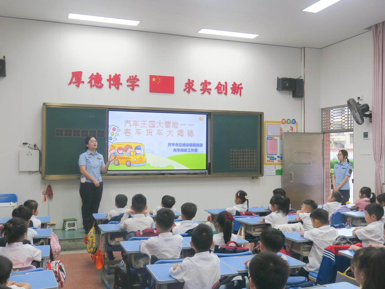 为进一步增强学生交通安全意识,普及交通运输行业法律法规,为学生安全出行保驾护航,同时推动2025年开平市道路交通运输整治联合执法行动深入开展,做到“执法+普法”相结合,市交通运输局“邑路芳华”工作室于4月27日走进开平市长师附属小学,为学生们带来一场生动有趣的交通运输安全普法宣传活动。
