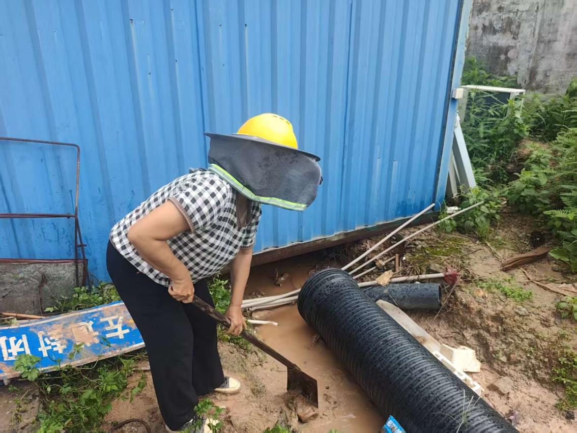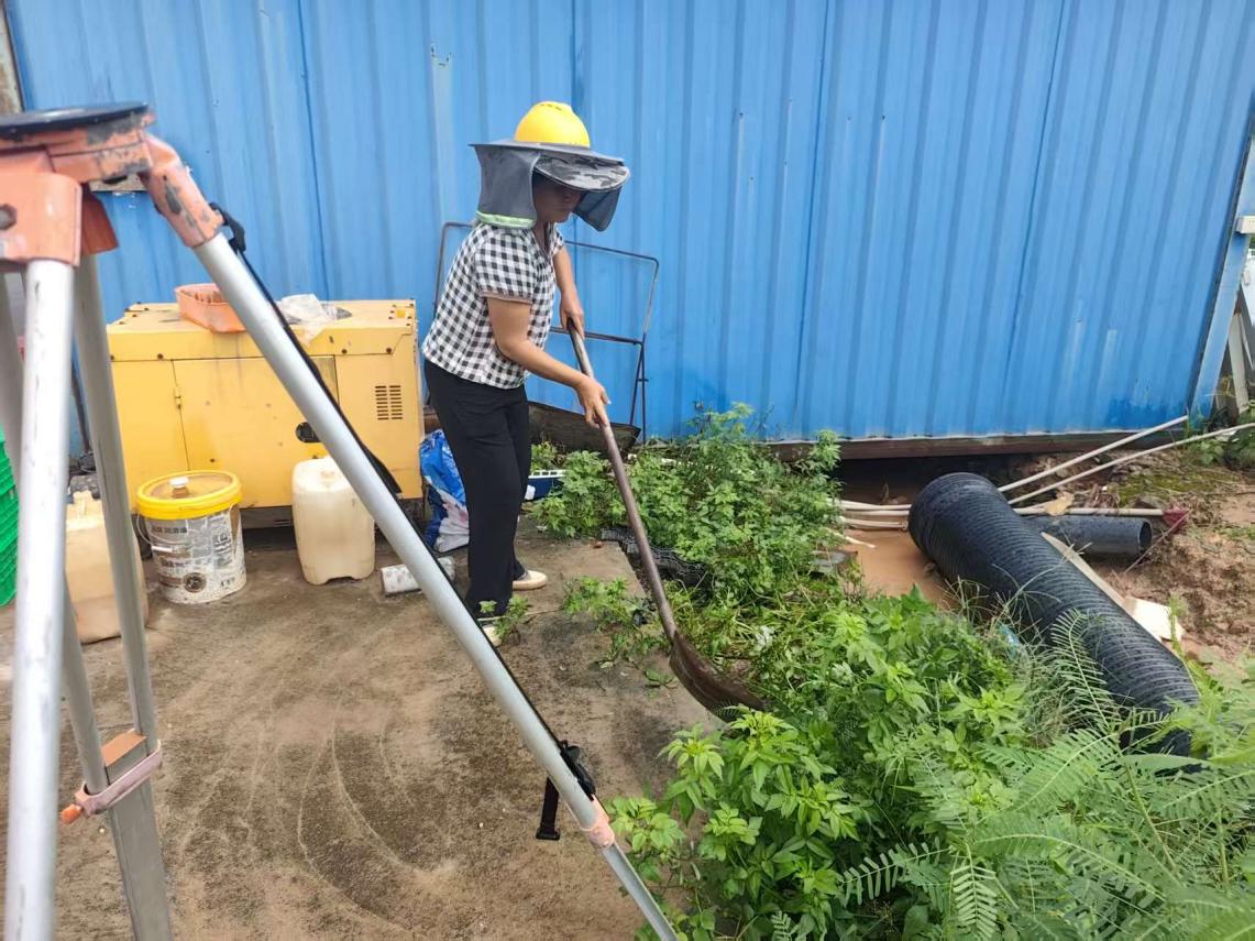 开平市县道红龙线(梁金山旅游公路及金章大道段)工程—金章大道段工作人员在对工人生活区进行杂草及积水清理