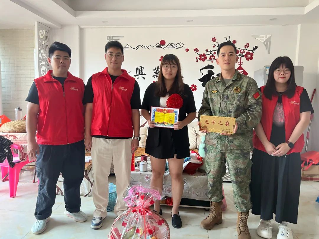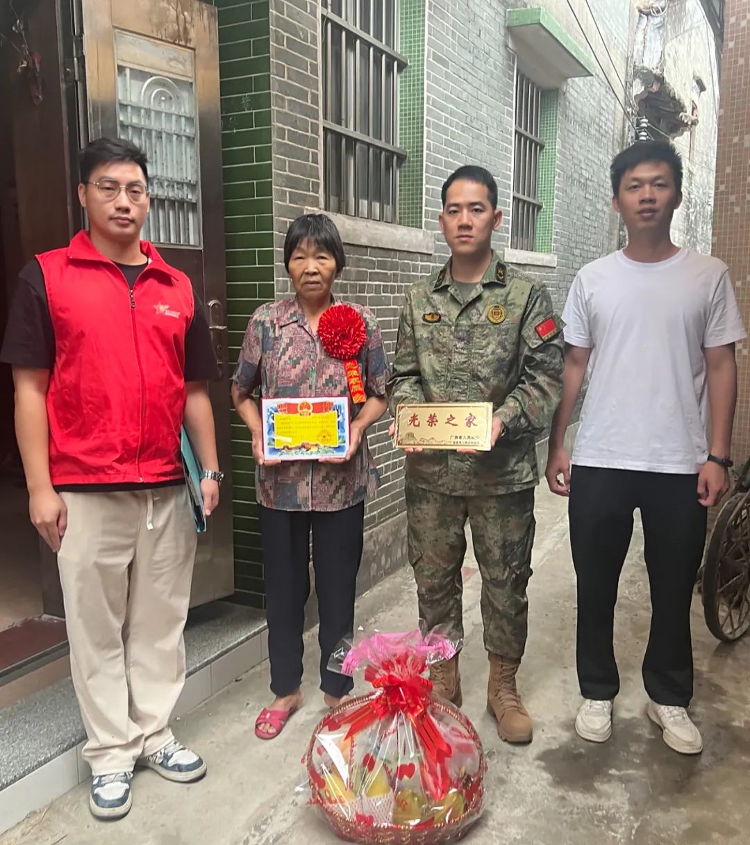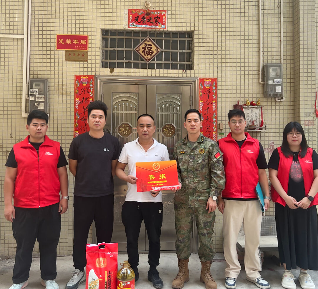 慰问组深入走访邝业成、谭文焯、郭沛杰、苏钜祥4名优秀士兵家庭,将喜报和慰问品送至家属手中,向军属们表示热烈的祝贺,并对其家属为国家、部队培养输送的人才以及为家乡赢得的荣誉表示感谢。同时,慰问组与军属们展开亲切交谈,详细了解军属的工作和生活情况,宣讲优抚政策,并希望家属能继续做好军人的坚强后盾,支持孩子安心服役,勉励孩子扎根军营、再立新功。