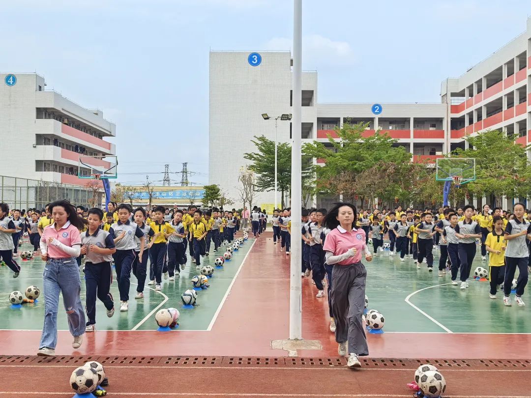 开平市水口镇第一小学大课间活动内容丰富多样,包括广播体操、慢跑跳绳、踢毽子和球类等项目。广播体操环节,同学们动作整齐划一;跳绳、踢毽子和球类项目则充满趣味性;慢跑活动则让同学们在阳光下尽情奔跑,释放活力。