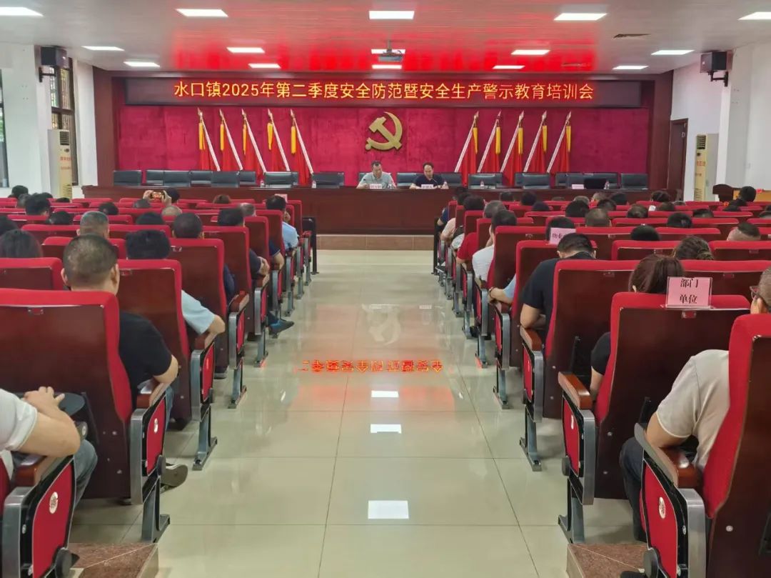 4月25日,水口镇组织召开2025年第二季度安全防范暨安全生产警示教育培训会。水口镇党委副书记、镇长胡万程出席会议并讲话。水口镇安委会成员单位、各村(社区)负责同志以及重点领域企业、小区物业负责人员约200人参加会议。