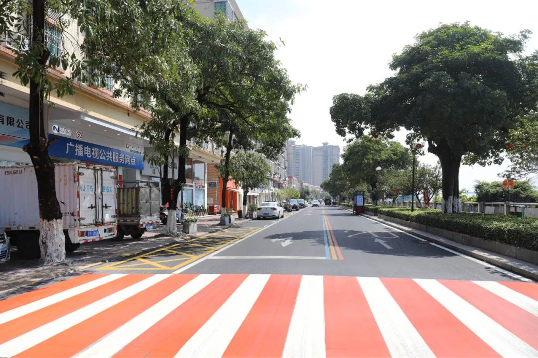 沿江东路毗邻新桥水河岸,设有机动车道、人行道、绿化地,路面宽敞整洁平坦,交通标线清晰规范,道路两旁绿树成荫,配套齐全,政务服务、休闲娱乐、美食生活等业态一应俱全。同时,紧扣典型镇“1+4+7+9+N”的建设要求,完成道路基础设施建设,沿街建筑外立面五要素风貌整治,致力打造成为舒适美观、干净整洁、功能丰富的美丽示范主街。