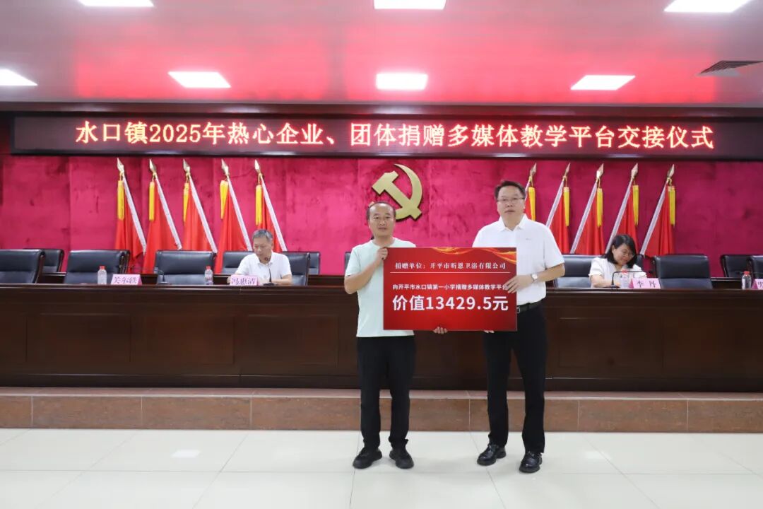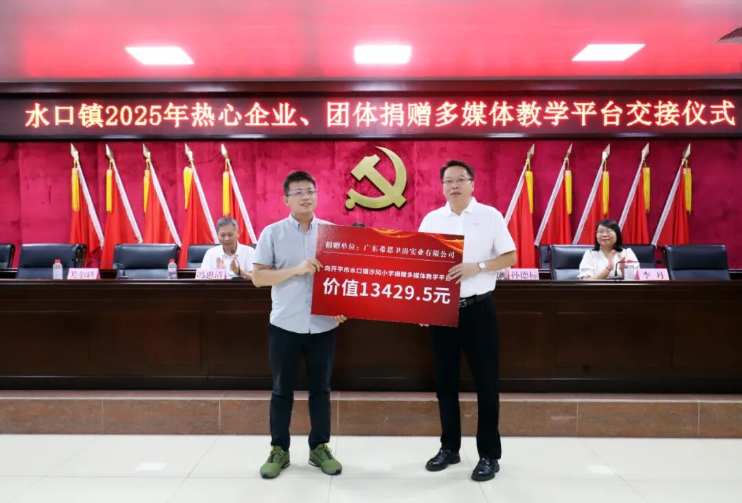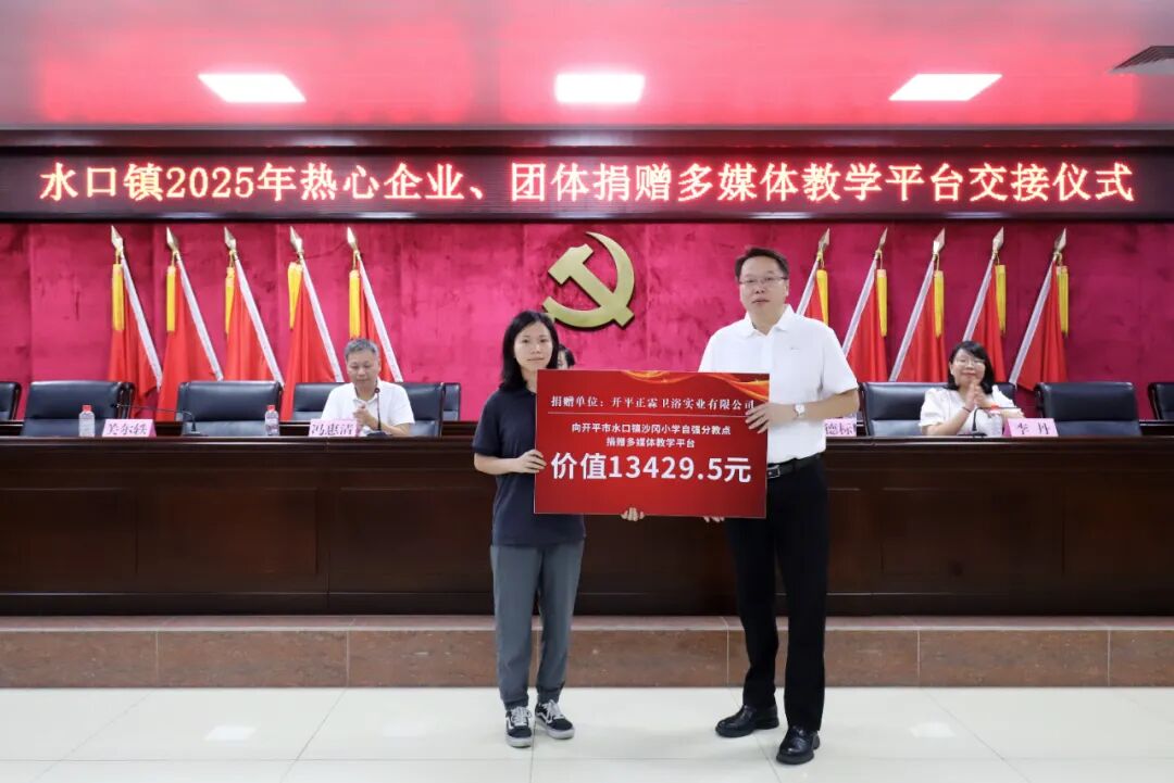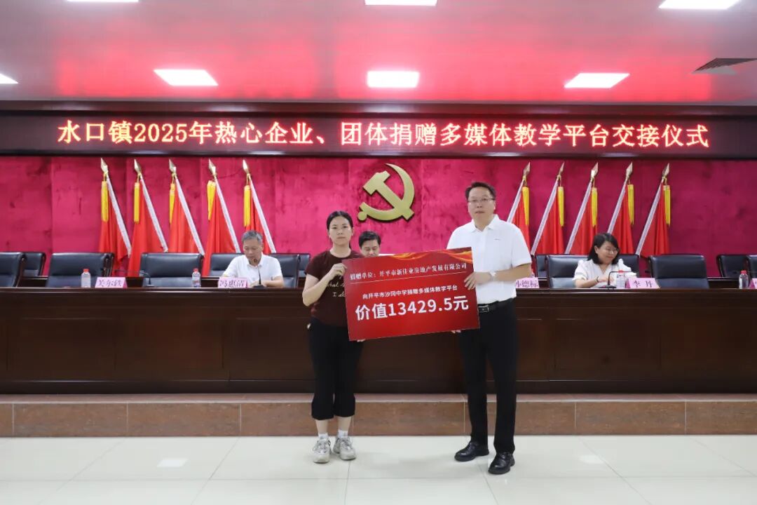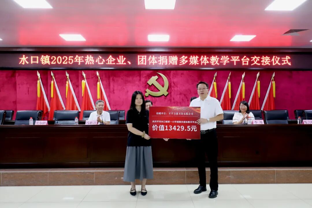 教育的高质量发展离不开全社会的共同参与和鼎力支持。大会现场特别举办了捐赠仪式,热心企业、团体积极践行社会责任,为水口镇教育事业贡献力量。据统计,本次捐赠总额约68万元,包含38个教学平台一体机教学设备设施和奖教助学金。其中,开平市水口镇泮村邝氏族务理事会单独捐赠了13个电化教学平台,其他热心企业合力捐赠了25个电化教学平台。这些教学设备将直接用于水口镇教育信息化建设,助力提升学校现代化教学水平、优化课堂互动体验。奖教助学金将用于激励一线教师深耕教学、潜心育人,从 “硬件升级” 与 “精神激励” 双维度为水口镇教育质量提升注入强劲动力。