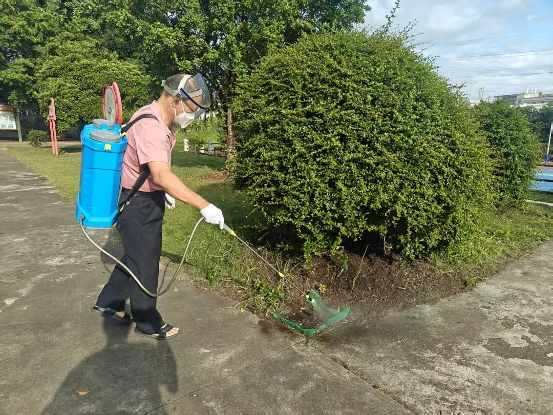 在环境清理基础上,水口镇各校严格对标疫情防控工作要求,构建起“消杀+监测+防护”三维防控体系。消杀环节,各校精准发力,创新采用“悬药灭蚊法”,对绿化带、下水道集中喷杀,确保蚊虫无处遁形。利用节日假期时间,投放倍磷硫杀虫颗粒、点燃蚊片,对教室、睡室、下水道等重点区域专业消毒。安排专人采用超低容量喷雾、热烟雾处理等技术,对食堂、卫生间等人员密集场所开展全面消杀,反复作业,有效降低蚊虫密度。