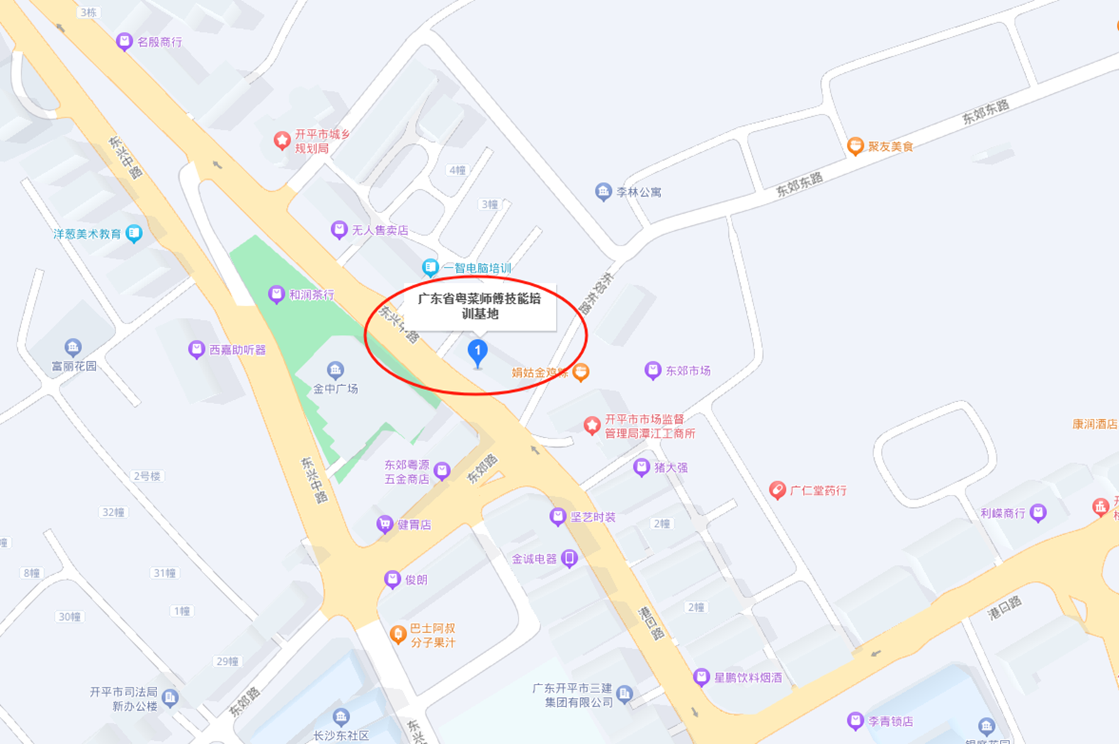 广东省粤菜师傅技能培训基地(地址:开平市东郊东路与东兴大道交叉口北20米),面试地点交通图详见附件2。